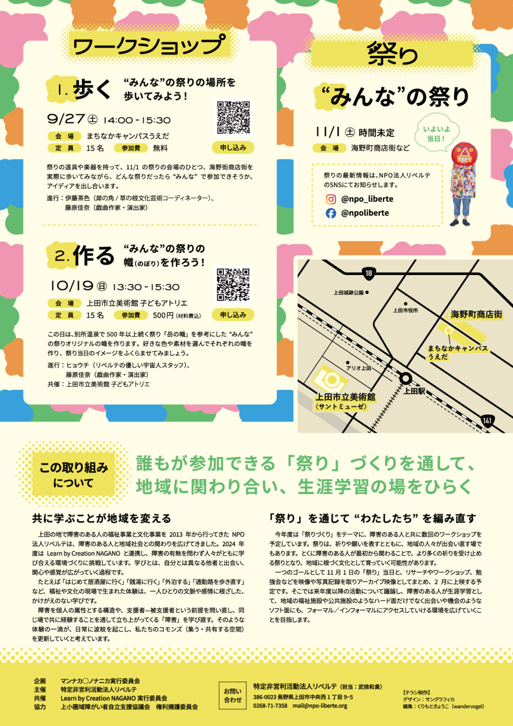 上田市で、主に障害のある方の活動を支える場作りを行なっているリベルテ様のイベントチラシ制作を担当させていただきました。